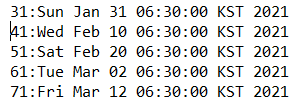 -> "3/1 :Fri Jan 01 06:00 KST 2021"