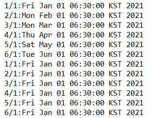 -> "1/1 :Fri Jan 01 06:00 KST 2021"